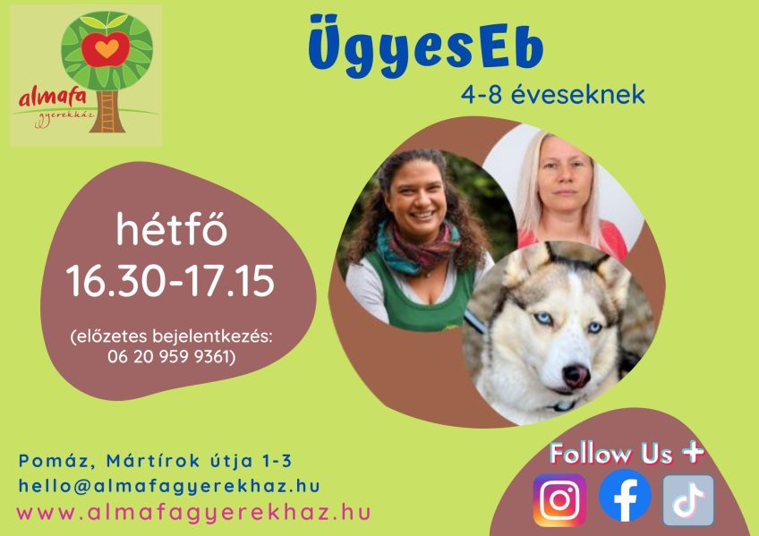Legújabb programunk az ÜgyesEb kutyaasszisztált foglalkozás 4-8 éves gyermekeknek.